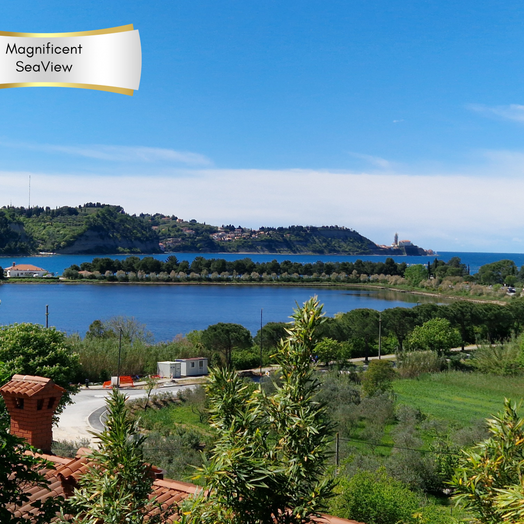 Außerhalb der Wohnung befindet sich eine Terrasse umgeben von viel Grün, auf der Sie auf bequemen Liegestühlen sonnen, Ihre Lieblingsgerichte grillen und den wunderbaren Blick auf die Bucht von Strunjan mit Piran im Hintergrund genießen können.
