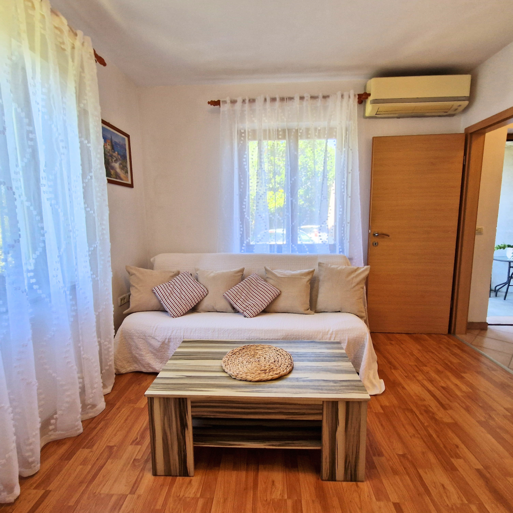 Die Ferienwohnung SARIA in Strunjan ist die ideale Wahl für Ihren Familienurlaub. Sie befindet sich im Erdgeschoss eines Familienhauses und wird von einer freundlichen Familie betreut, die 2 Schlafzimmer mit Queensize-Betten und ein Schlafsofa im Wohnzimmer für eine zusätzliche Person bietet. Die Wohnung verfügt über eine geräumige Küche mit allen Annehmlichkeiten (Herd, Backofen, großer Kühlschrank, Geschirrspüler und alle Utensilien). Das Badezimmer ist geräumig und mit einer Badewanne sowie einer Duschkabine ausgestattet. Sie finden auch eine Waschmaschine, einen Trockner und grundlegende Hygieneartikel vor. Die Wohnung ist klimatisiert, bietet eine WLAN-Internetverbindung und einen großen Fernseher im Wohnzimmer.