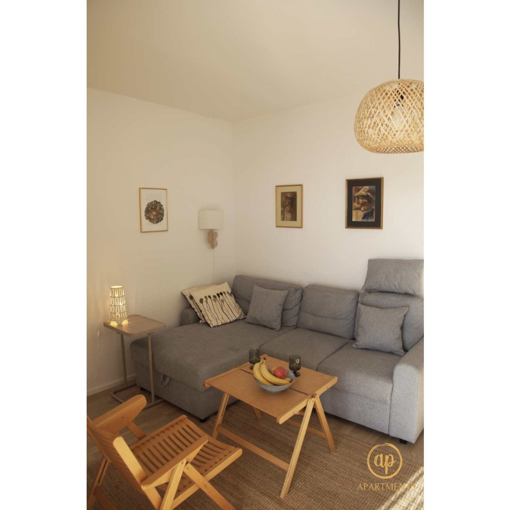 Das Apartment bietet Platz für bis zu 4 Personen und verfügt über zwei Schlafzimmer, ein Wohnzimmer, eine Küche und ein Badezimmer. Ein großzügiger Balkon lädt zum Entspannen ein. Den Gästen steht zudem eine gemeinschaftlich genutzte Grünfläche hinter dem Haus zur Verfügung. Ein Parkplatz, Klimaanlage, WLAN, Grillmöglichkeiten sowie Bettwäsche sind im Preis inbegriffen. Kleine Haustiere sind gegen einen geringen Aufpreis willkommen.
