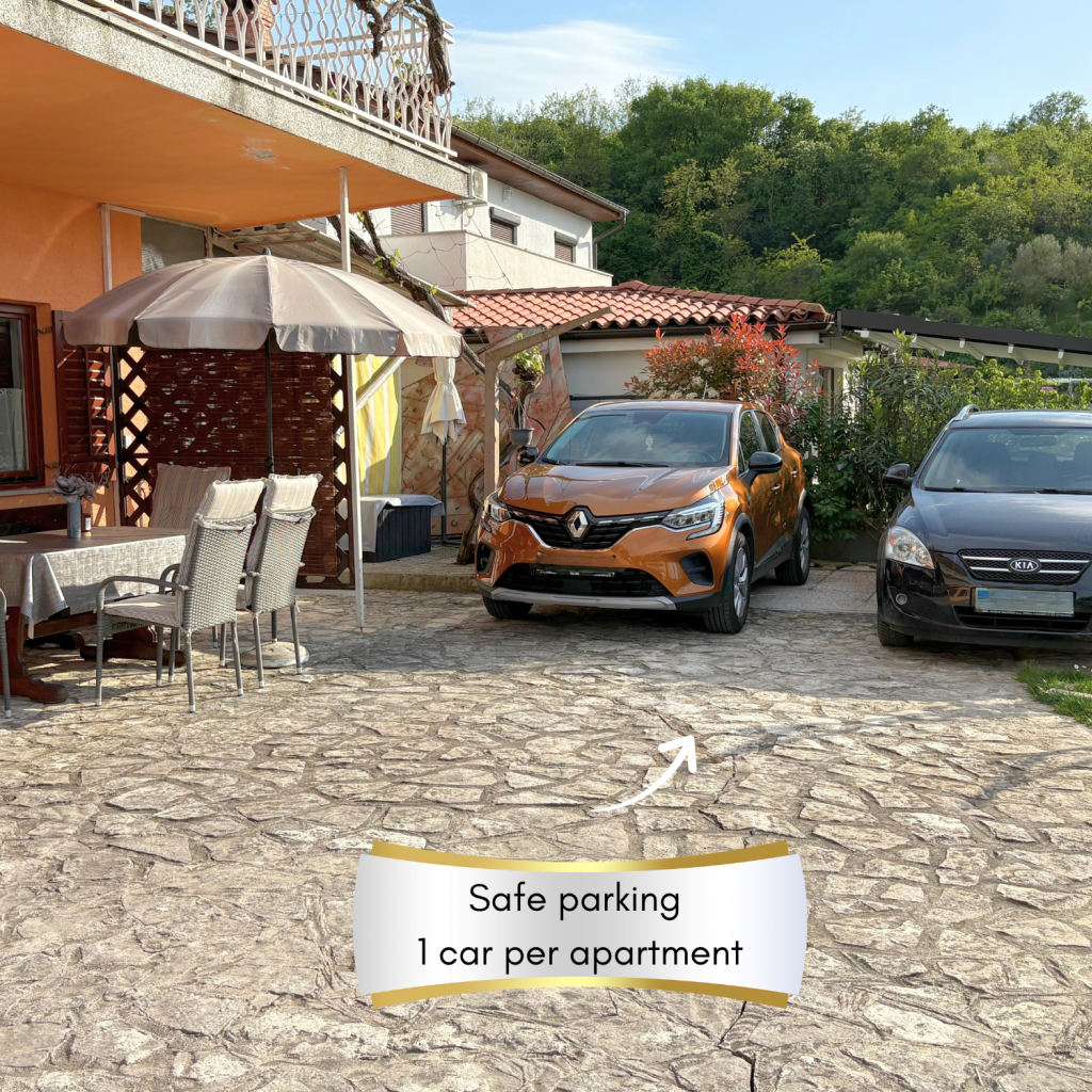 Studio Vita ist ein gemütliches Apartment im Erdgeschoss, das bis zu drei Gäste beherbergen kann. Es verfügt über ein offenes Schlafzimmer, eine Küche, einen Essbereich sowie ein Badezimmer mit Dusche und Waschmaschine. Vor dem Apartment befindet sich eine Terrasse mit einem Esstisch, und Gäste haben Zugang zu einem gemeinsamen Garten mit Liegestühlen, um im Freien zu entspannen.