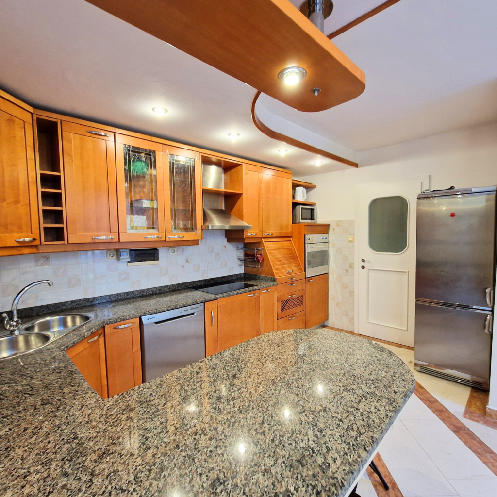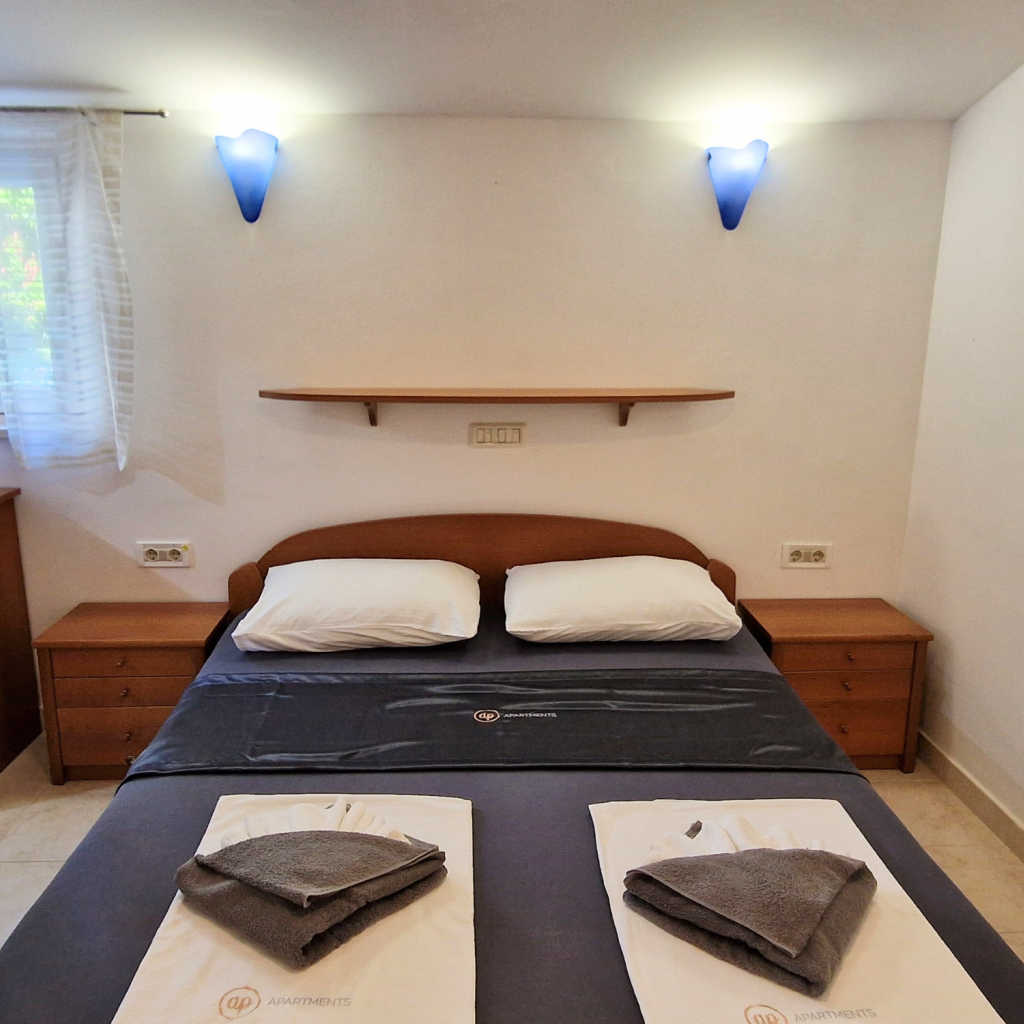 You'll find a fully equipped kitchen, a second bathroom with a shower and washing machine, a spacious living room with a sofa and a large TV, and a separate dining area for six. The entire unit is on the ground floor and has two air conditioners and an additional fan in the dining area. High-speed WiFi is available, and bed linen and towels are provided.
