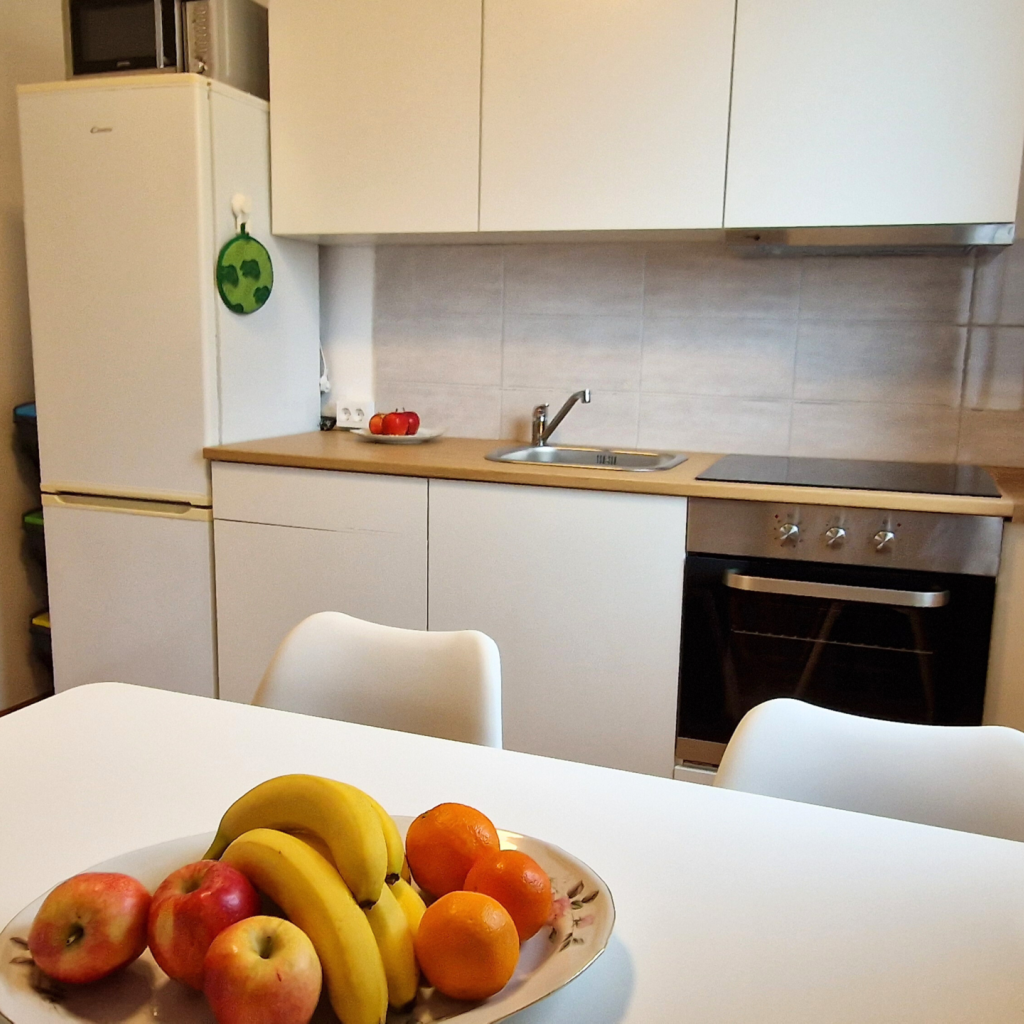 Vsi apartmaji so bili leta 2024 obnovljeni in se ponašajo z novimi kuhinjami, novimi posteljami ter prenovljenimi kopalnicami. Kuhinje so opremljene s pečico, mikrovalovno pečico, steklokeramično ploščo s 4 kuhalniki, hladilnikom, zmrzovalnikom ter vso potrebno kuhinjsko posodo. Vaše najljubše jedi boste lahko uživali ob jedilni mizi v kuhinji ali pa na terasi oziroma na balkonu.