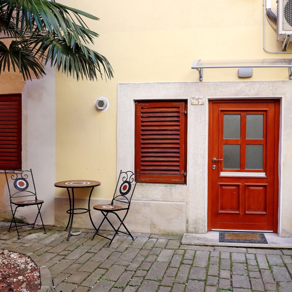 Posebna prednost studia je tudi manjša zasebna terasa pred vhodom z mizico za dve osebi – prava redkost v Piranu – kjer lahko uživate ob jutranji kavi ali sproščenem večeru.